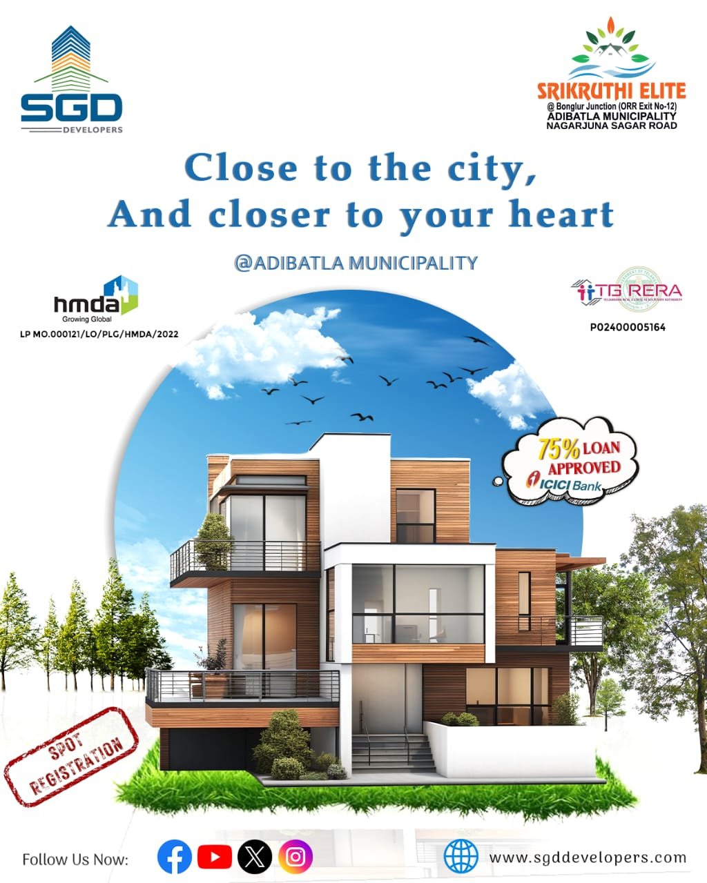 Own a plot in Hyderabad with bank-loan-supported projects by SGD. Ideal for new buyers or investors looking for secure, high-growth areas with clear documentation.