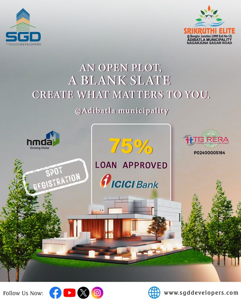 Get ICICI Bank loan support to buy your Adibatla plot today.