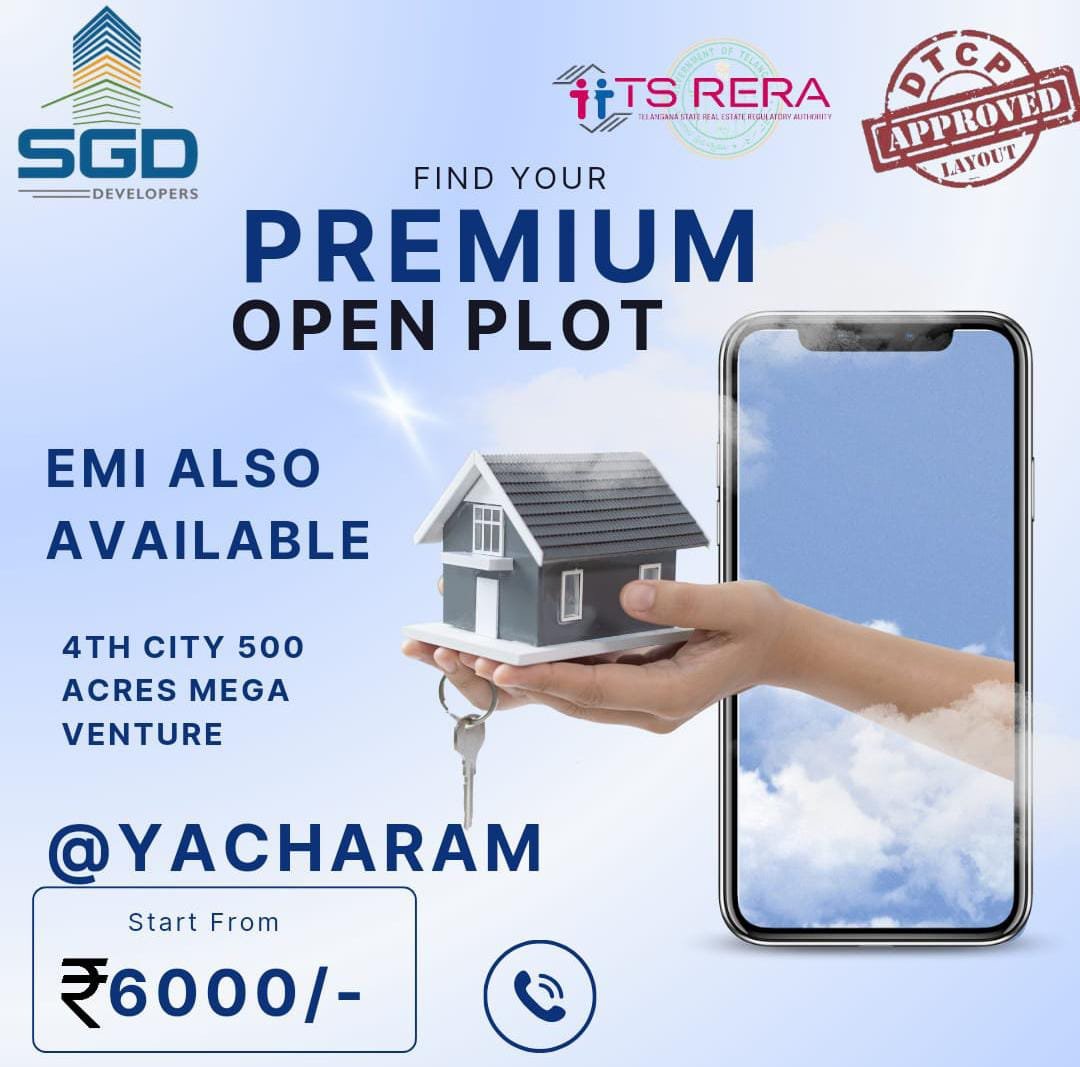 Discover premium DTCP-approved open plots by SGD Developers at Yacharam, ideal for residential investment. Backed by easy bank loan options, these plots offer secure documentation, prime location access, and the perfect opportunity to own land near Hyderabad’s fast-developing zones.Located along the rapidly growing Srisailam Highway, Yacharam has emerged as a hotspot for real estate development. SGD Developers brings you well-planned plots with clear titles, underground drainage, electricity provisions, and internal roads—ensuring you a future-ready living space or smart investment.With DTCP approval and bank loan availability from leading financial institutions, owning a plot has never been easier. Whether you’re planning to build your dream home or looking for long-term land value appreciation, SGD Developers at Yacharam offers a reliable and rewarding choice for every property buyer.